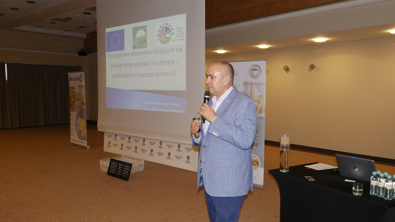 Prof. Andrzej Gaweł z Uniwersytetu Przyrodniczego we Wrocławiu przybliżył uczestnikom spotkania trendy na światowym rynku drobiarskim, oczekiwania konsumentów oraz wyjaśnił na czym polegać będą badania naukowców na terenie zakładu firmy ModernHatch sp. z o.o. sp. k. w Magnuszowicach. Założeniem projektu Grupy Operacyjnej ModernHatchEPI.eu jest zapewnienie jak najlepszych warunków rozwoju piskląt poprzez umożliwienie jedzenia i picia natychmiast po wydostaniu się ze skorupki. Efekty tych działań z całą pewnością przełożą się na lepszą zdrowotność piskląt jednodniowych oraz uzyskanie przez nie optymalnej masy ciała, ponieważ wcześniejsze pobieranie paszy uaktywni przewód pokarmowy, który będzie się lepiej rozwijał, a pobrane z woreczka żółtkowego przeciwciała sprawią, że układ immunologiczny ptaków będzie sprawniej funkcjonował. Dodatkowo, dzięki zastosowanej innowacyjnej technologii, przeprowadzone zostaną badania nad wczesnym podaniem probiotyków do jaja, co ma przyczynić się także do poprawy zdrowotności piskląt.